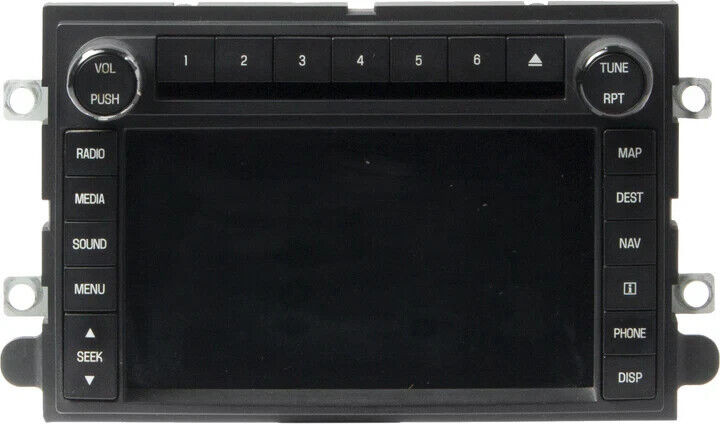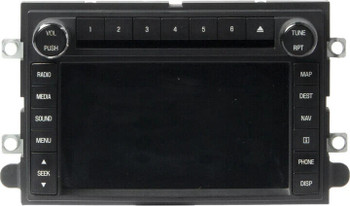 The product is a navigation radio designed for various Ford vehicles from 2009 to 2010, including the Edge, F150, F250, Expedition, and Explorer, as well as the Lincoln MKX. It is an original equipment manufacturer (OEM) part with a warranty of 90 days. The navigation radio does not require a specific code for installation and is a direct replacement for the front placement on the vehicle. It features navigation capabilities and is a genuine Ford part with the manufacturer part number AL1T18K931AD and interchange number 638-03324.